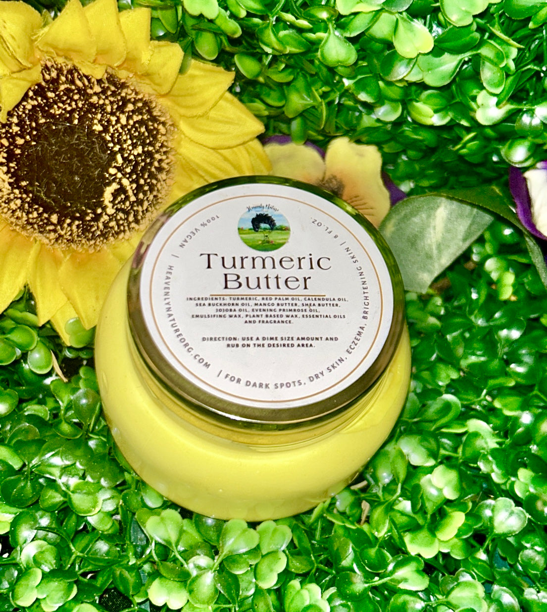 Our Luxurious Turmeric Body Butter smells Ahmazing, feels Like Silk on your skin, it’s healing herbs and all natural ingredients helps to brighten and clarify dark spot, blemishes and also helps to reduce hyperpigmentation.